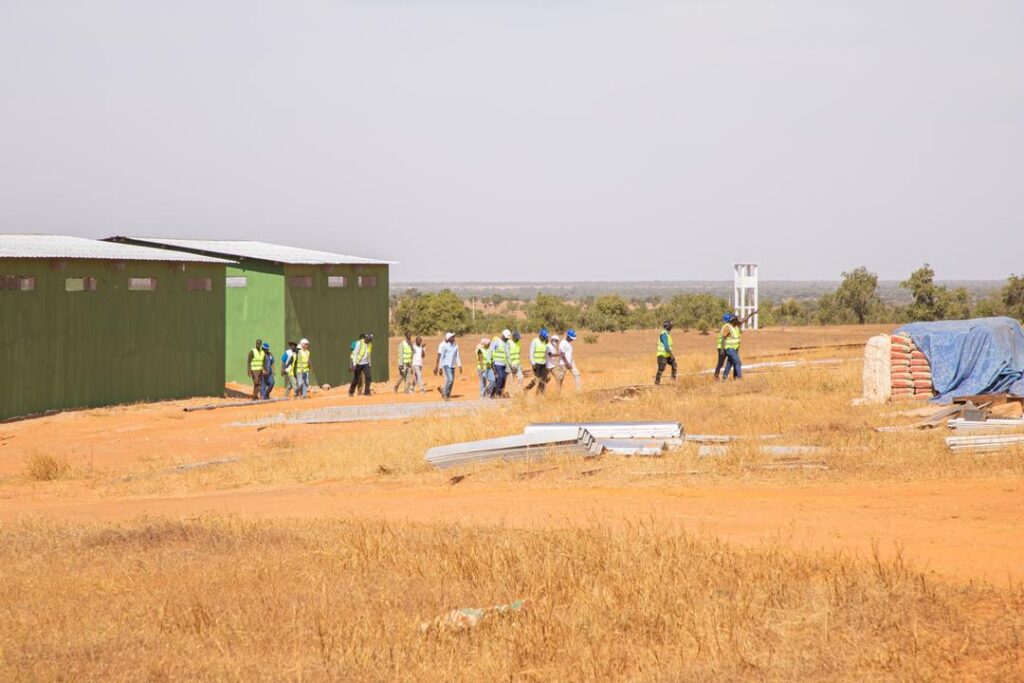 Les travaux pris en charge par l’entreprise ETIC sont en cours sur plusieurs fronts et le taux d’avancement global est estimé à 53 %. Il s’agit des travaux de la plateforme d’assise de conteneurs, les travaux d’implantation du local technique TGBT, les travaux de pose de la structure support du Forage F5 entre autres. Par contre, pour le mini central solaire, 1152 panneaux solaires posés.