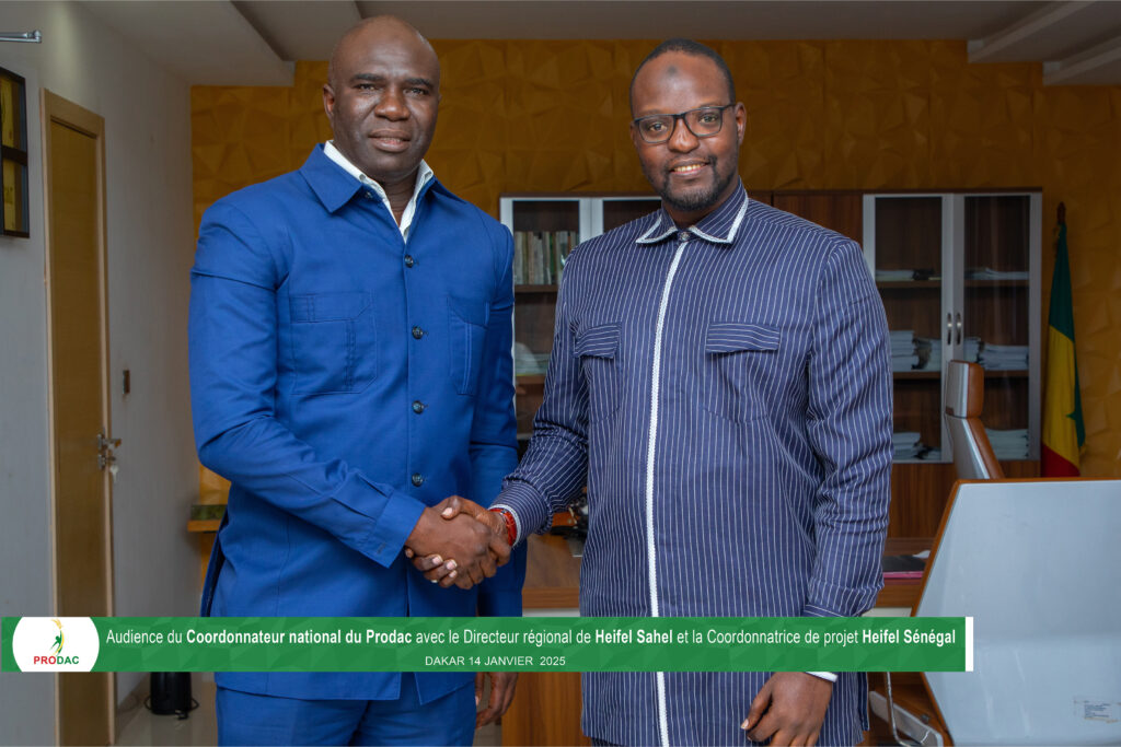 AUDIENCE DU COORDONNATEUR NATIONAL DU PRODAC AVEC LE DIRECTEUR RÉGIONAL DE HEIFEL SAHEL ET LA COORDONNATRICE DE PROJET HEIFEL SENEGAL